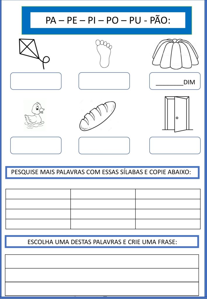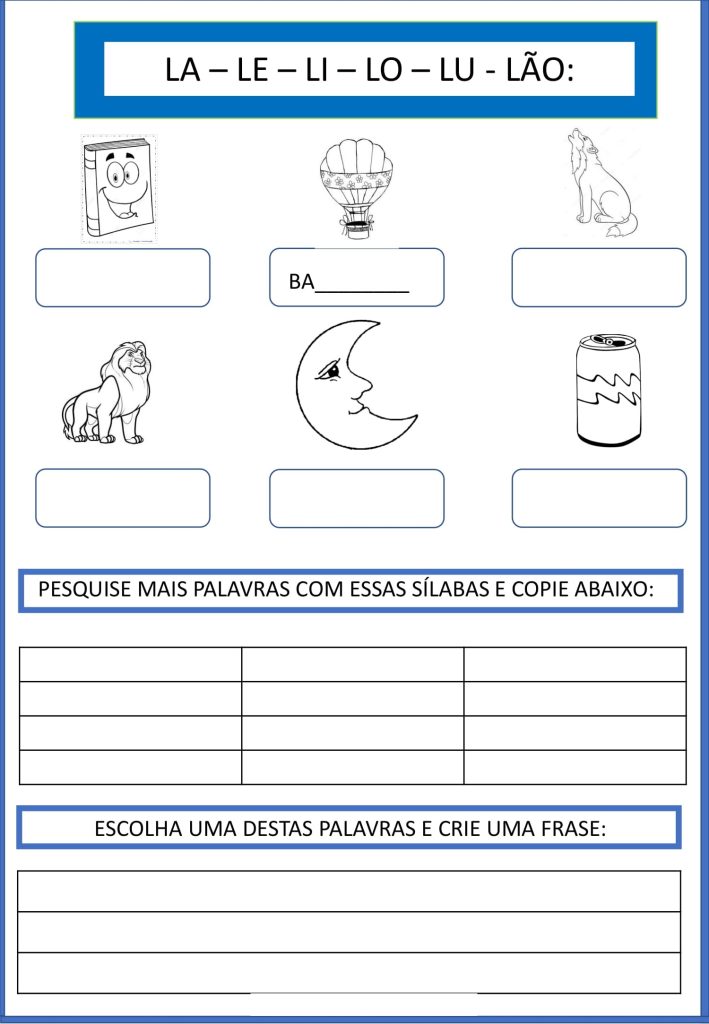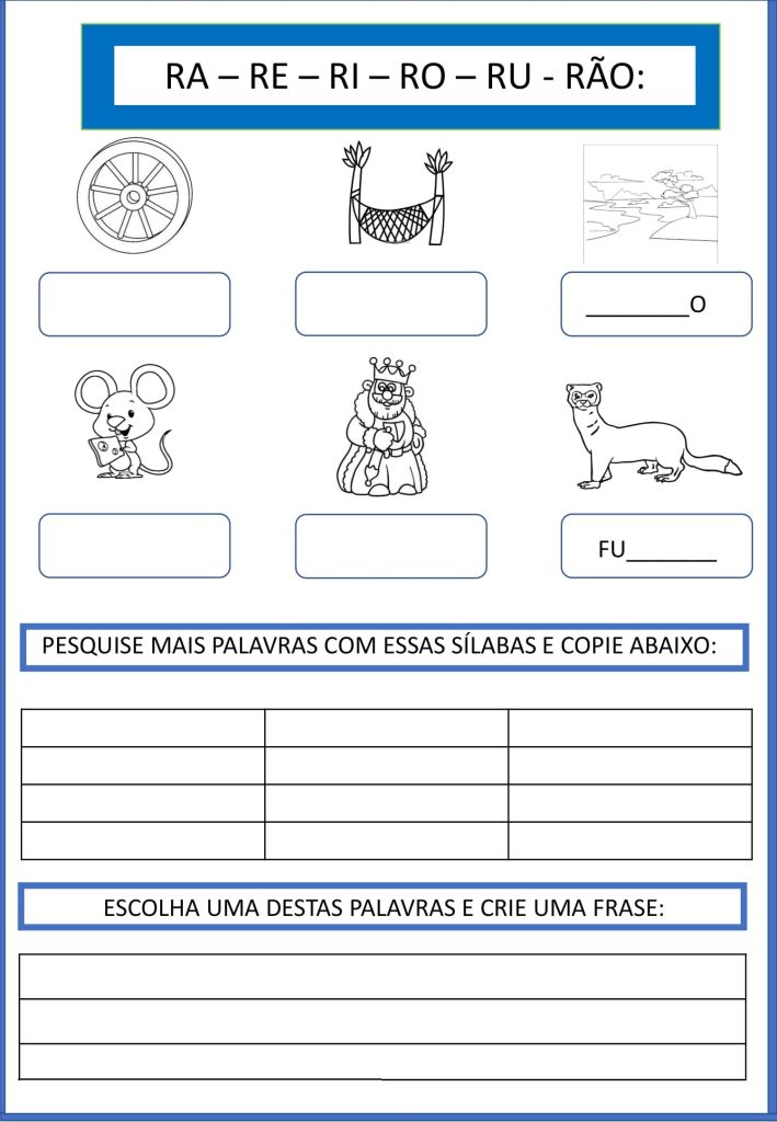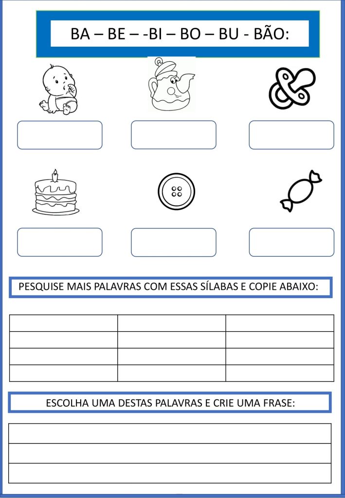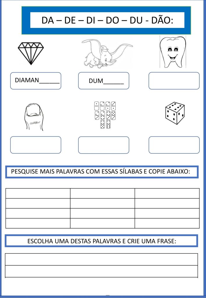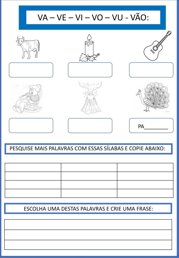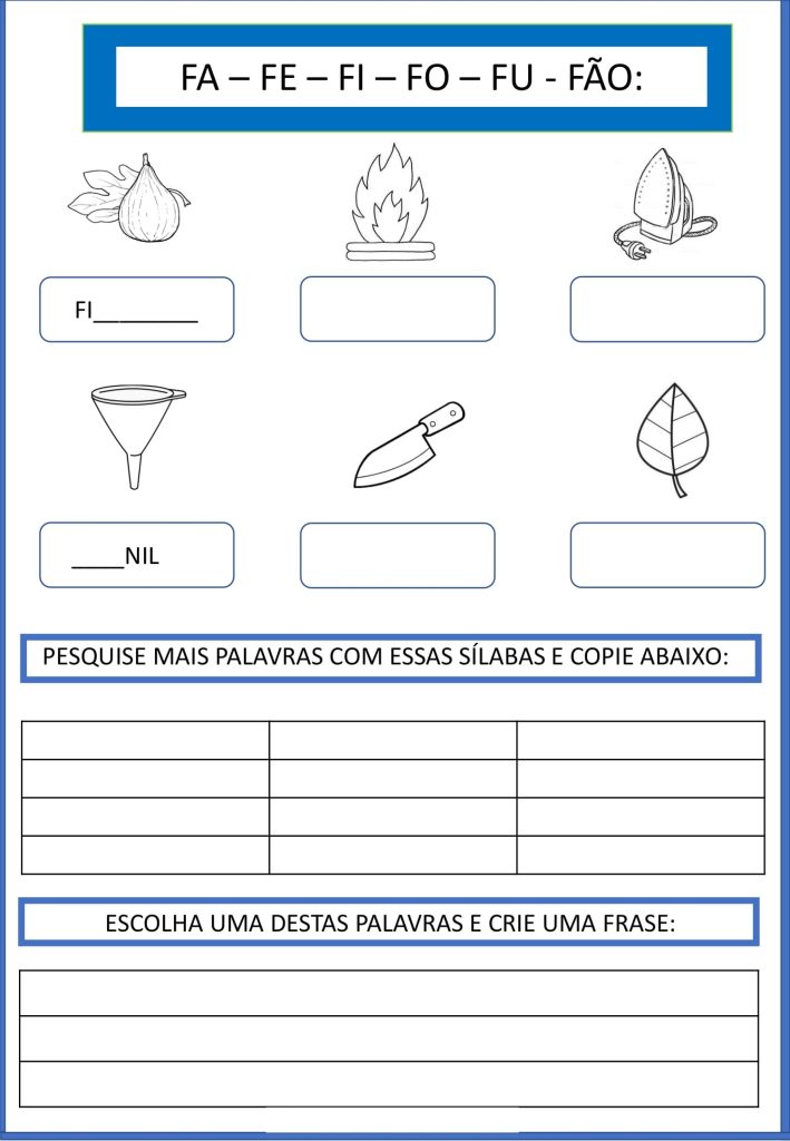 1º ANO – Atividades de alfabetização – FAMÍLIAS SILÁBICAS