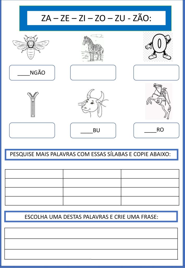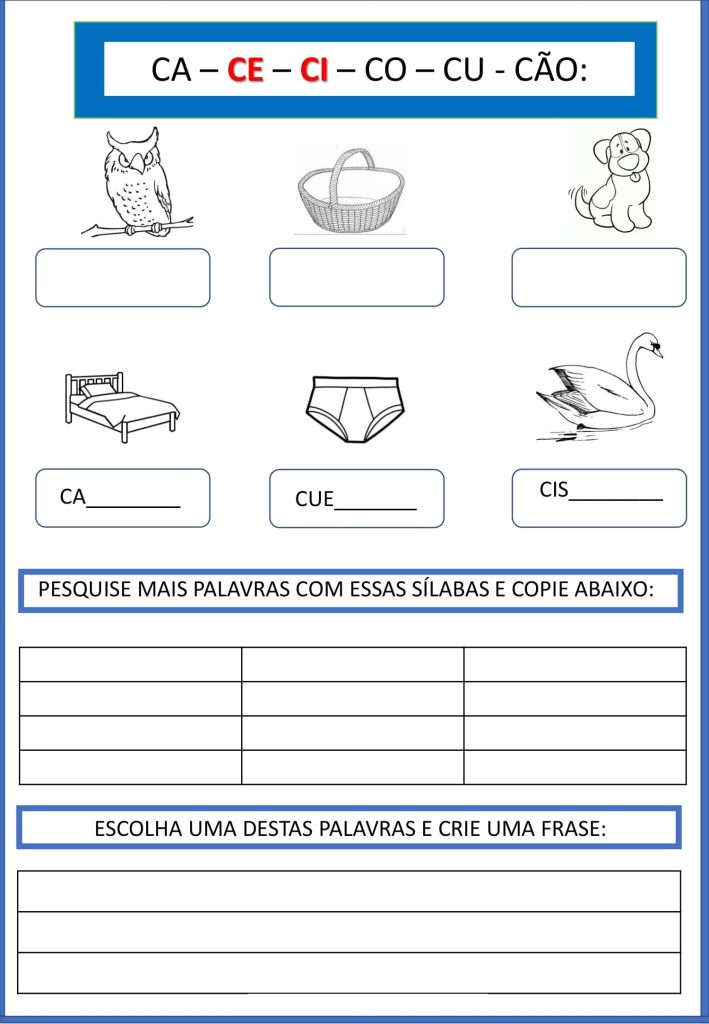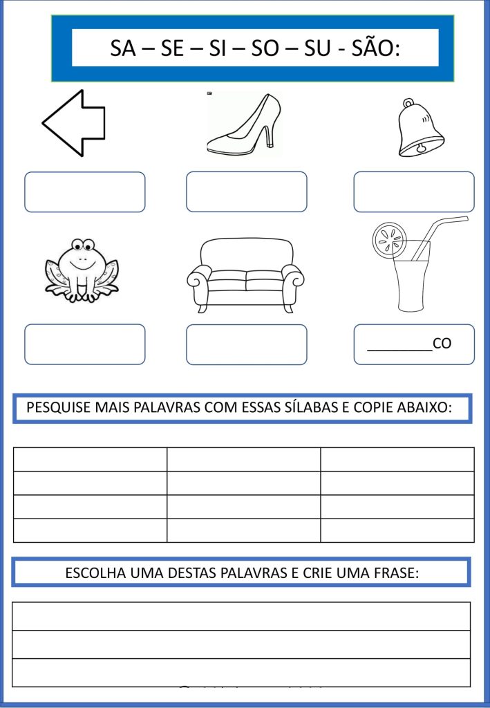 1º ano – Atividades de alfabetização: nome aos desenhos e complete as sílabas