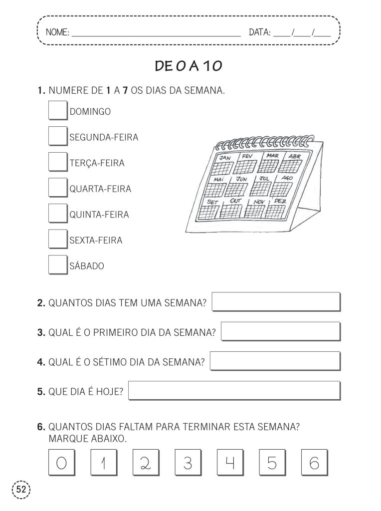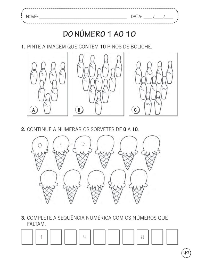 Ed. infantil / 1º ano – Atividades com os números de 0 a 10