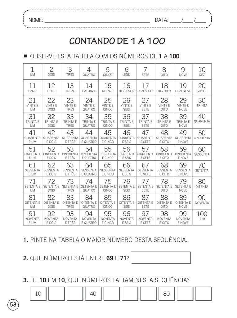 1º ano – Atividades de matemática envolvendo os números de 10 a 100