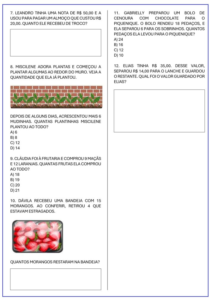 1º e 2º ano – ATIVIDADES DE MATEMÁTICA – ADIÇÃO E SUBTRAÇÃO