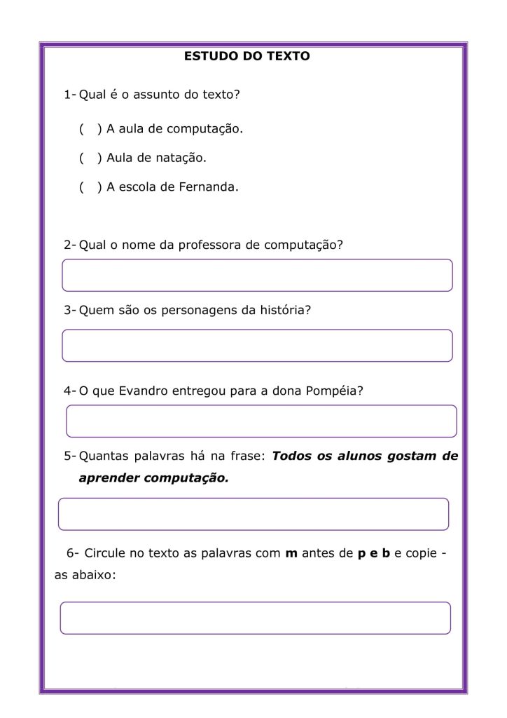 2º ANO – ATIVIDADES DE LEITURA E INTERPRETAÇÃO DE TEXTO –