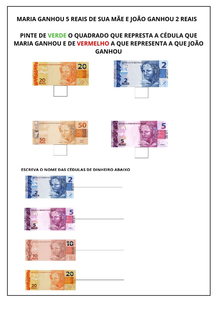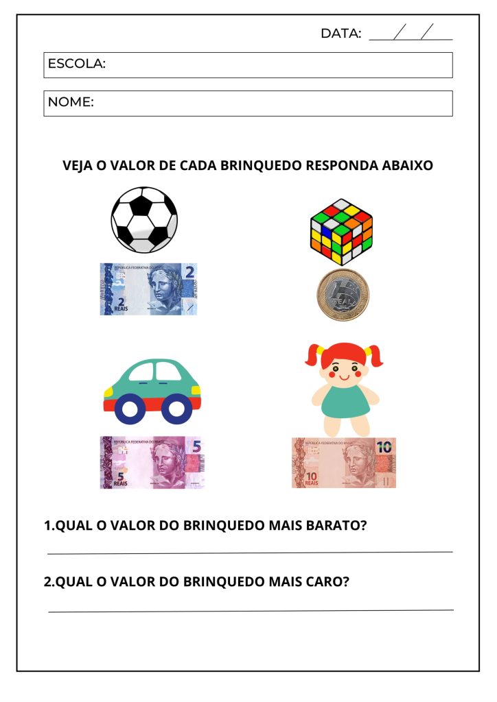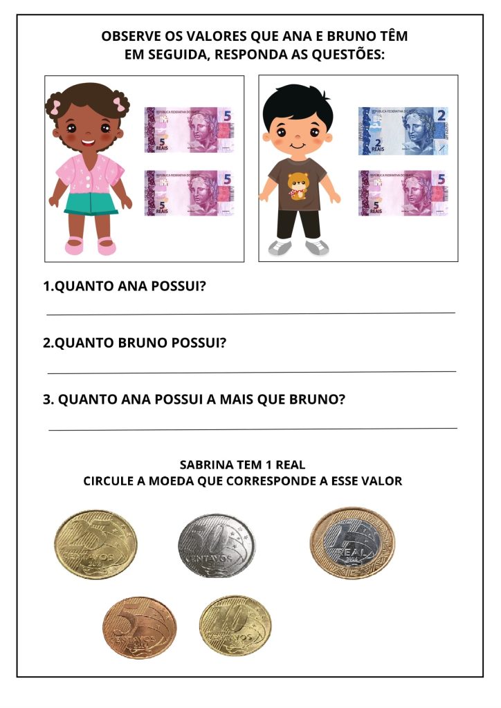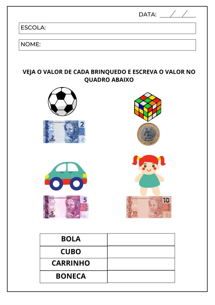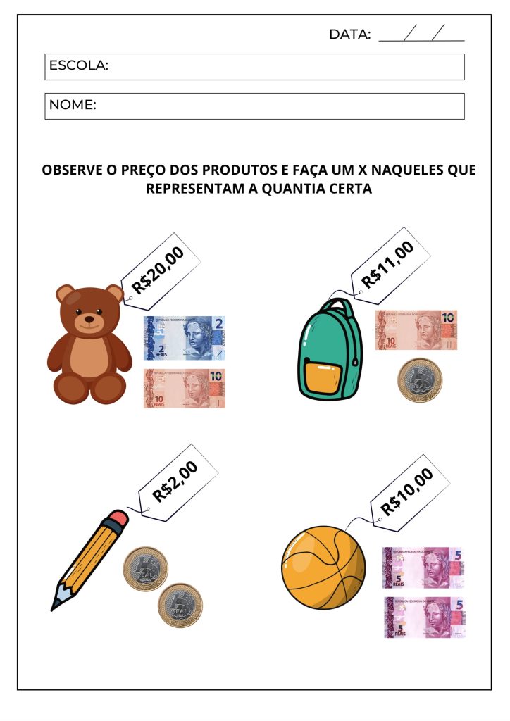 2º ano – Atividades de matemática – Sequência didática – Sistema monetário, grandezas e medidas