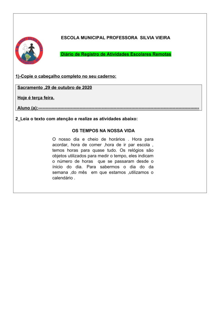 2º ANO – PLANO DE AULA E ATIVIDADES DE GEO/HIST/CIÊNCIAS – O TEMPO COMO MEDIDA