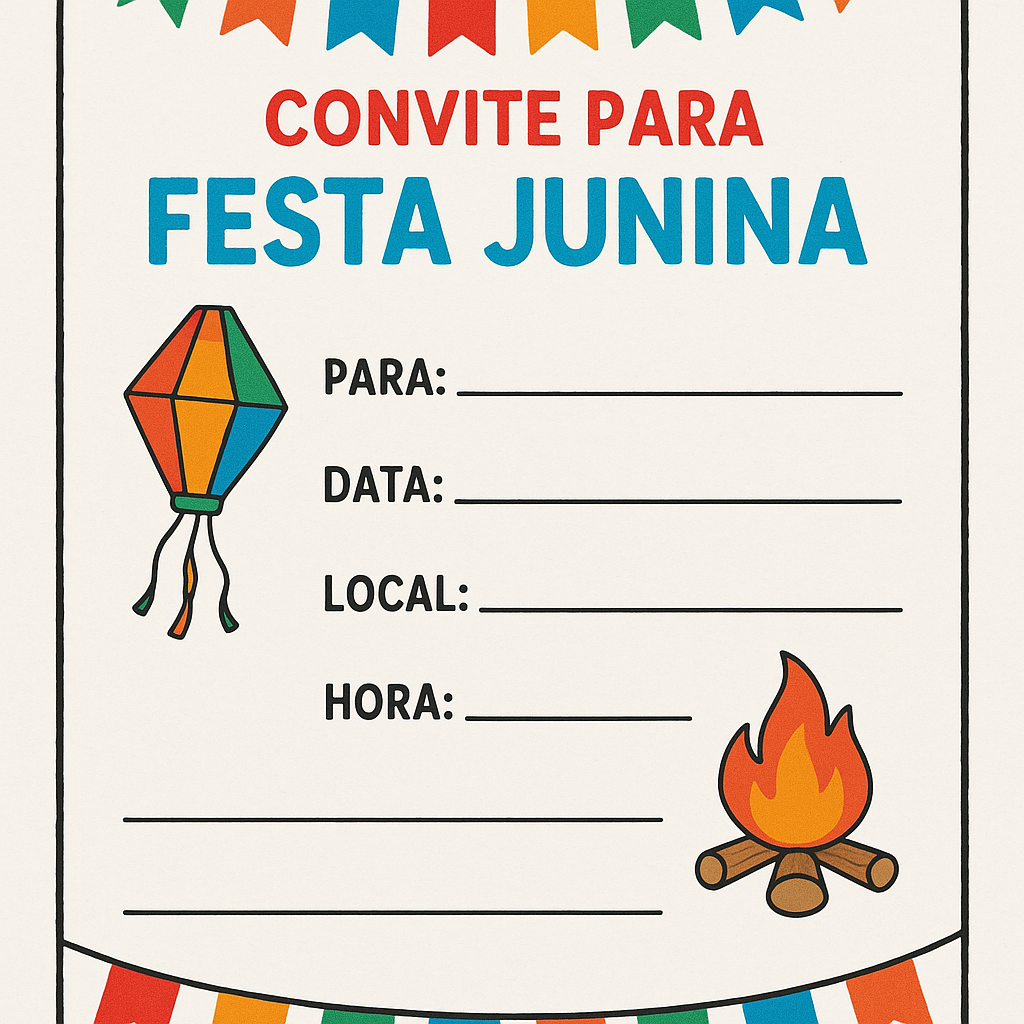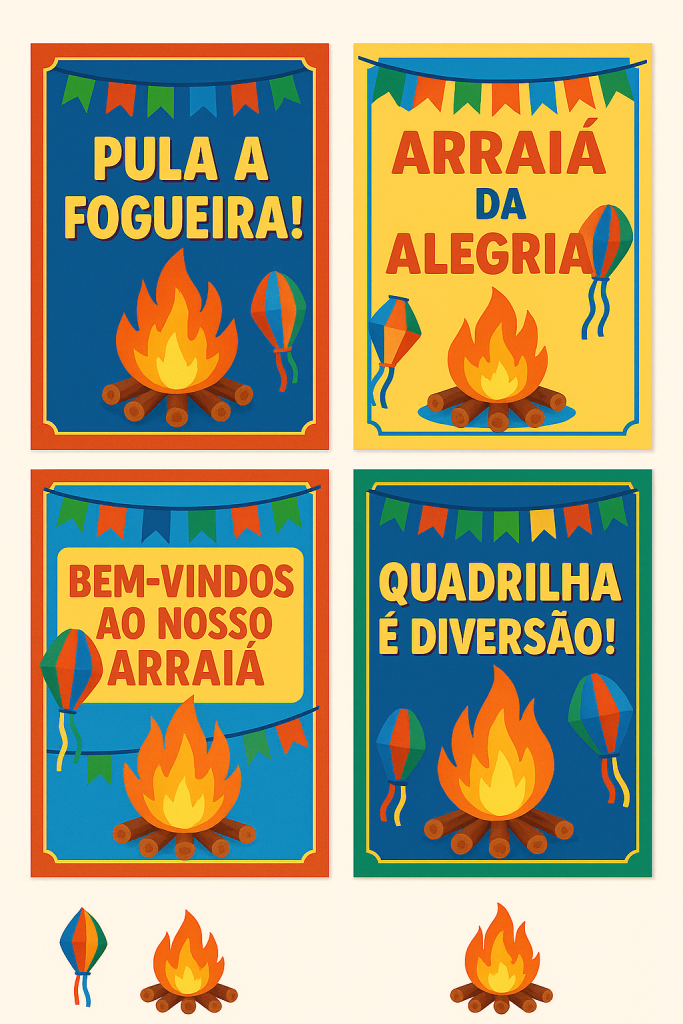 • Grupo 3: Cartazes temáticos com frases típicas (“Pula a fogueira!”, “Arraiá da alegria!”)