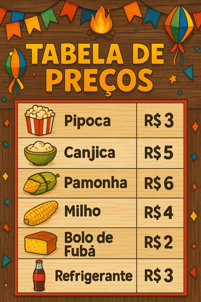 • Ingredientes para uma receita junina simples (se houver possibilidade).