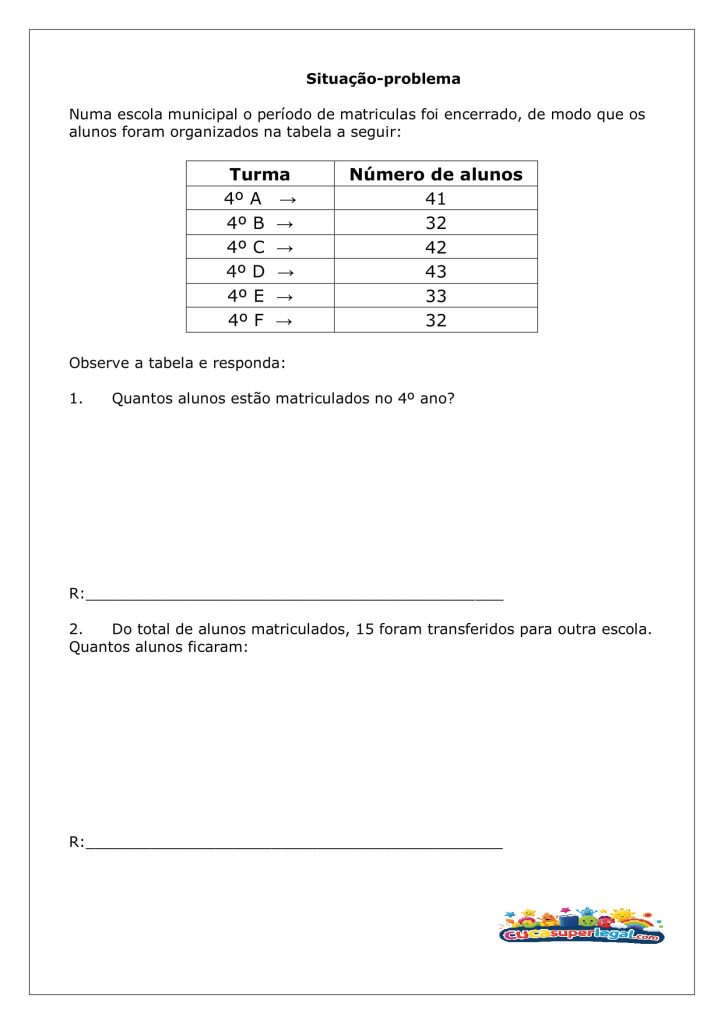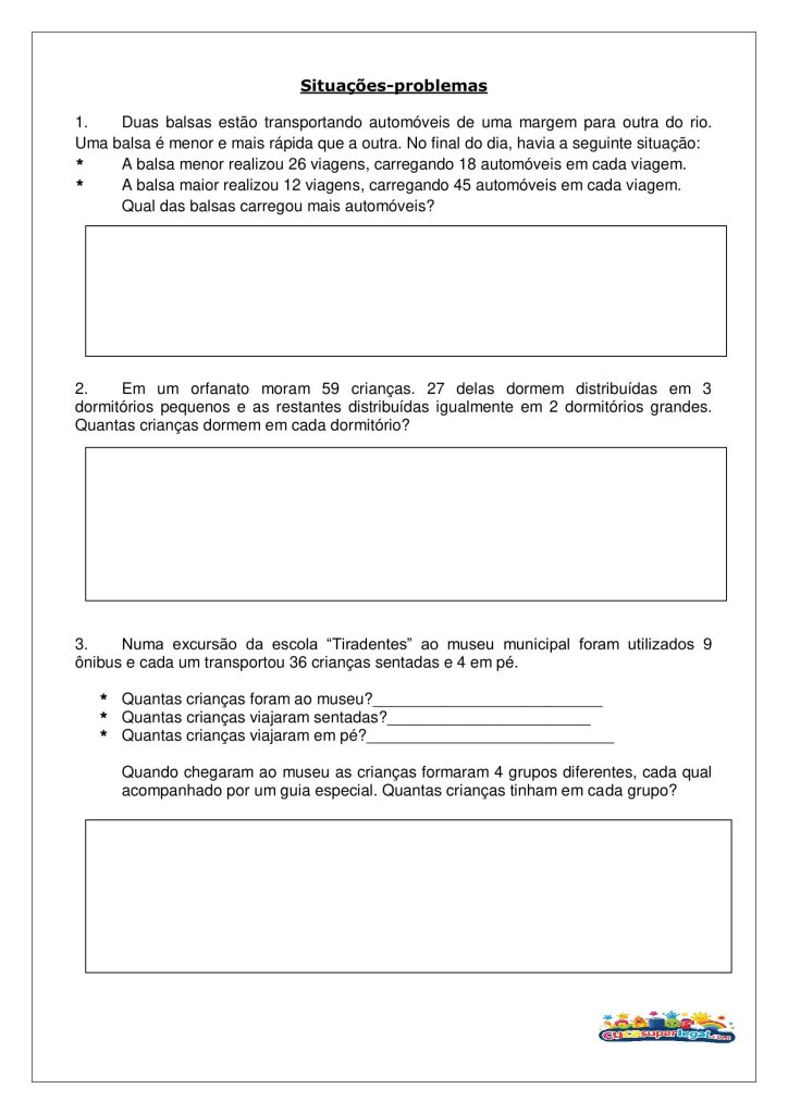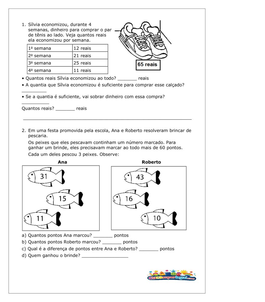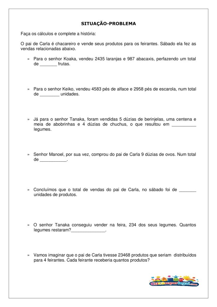 3º ao 5º ano – Atividades de matematica para imprimir, operações e situações problema