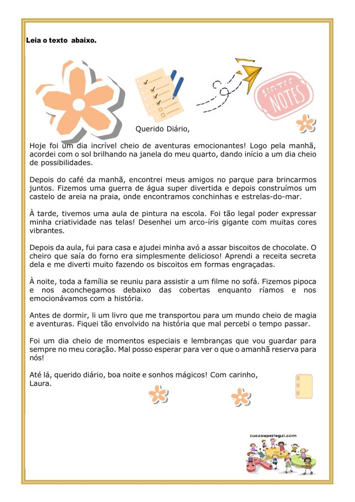 4º e 5º ano – Atividades de Língua Portuguesa – Leitura e Interpretação de Diário Pessoal