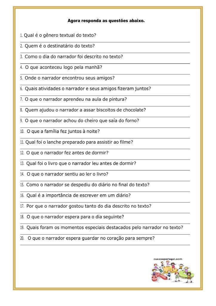 • Distribua as perguntas de interpretação (Imagem 2) para cada aluno.