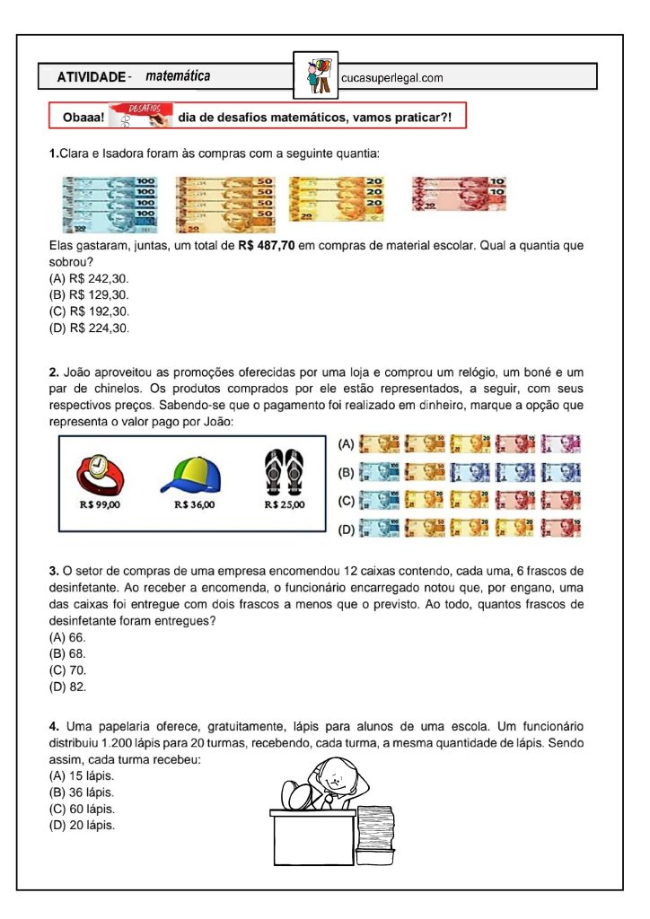 - Resolução de Problemas: (EF04MA03), (EF04MA06), (EF05MA05), (EF05MA07)