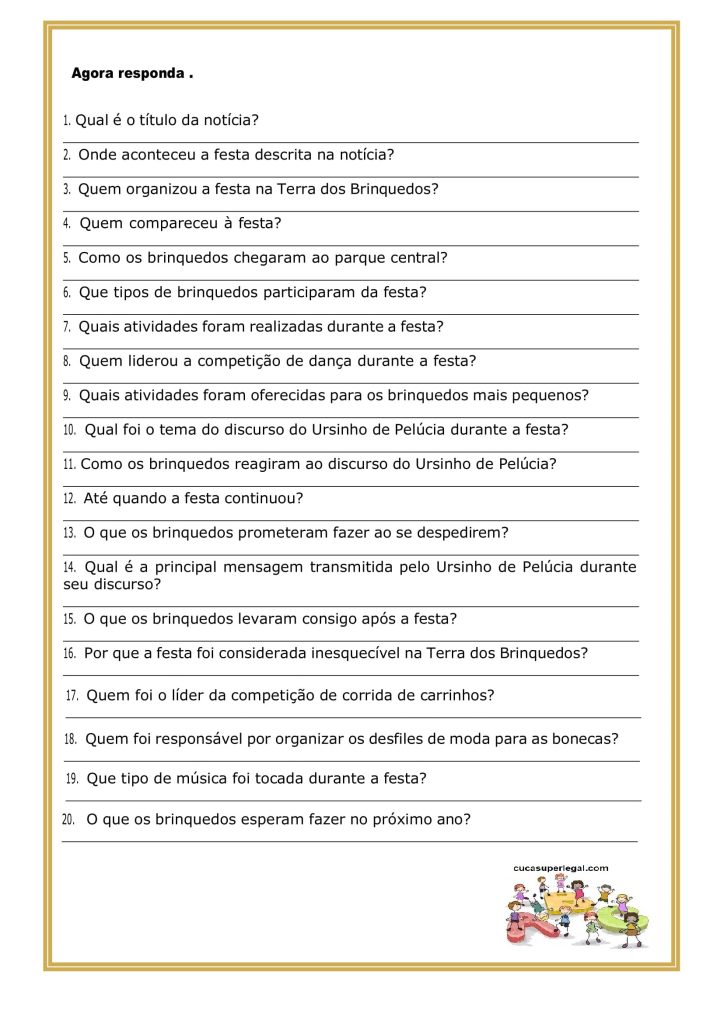 - Cópias das perguntas de interpretação