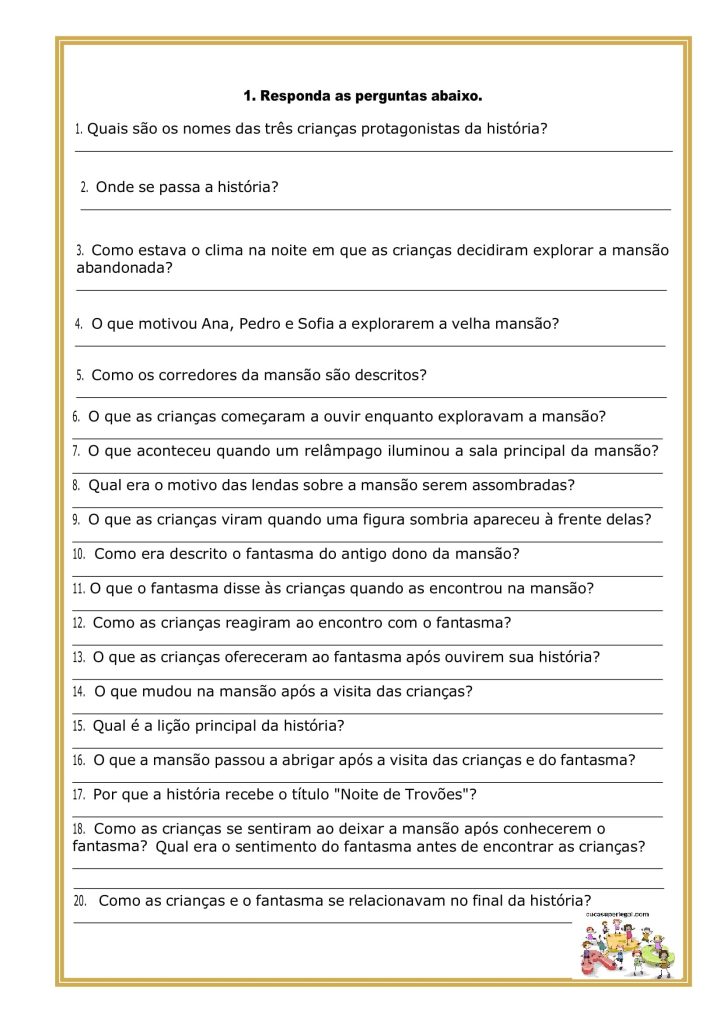 - Produção de um Diário: Sugerir que escolham um dos personagens (Ana, Pedro, Sofia ou o fantasma) e escrevam uma entrada de diário sobre a noite na mansão, descrevendo seus sentimentos e impressões.