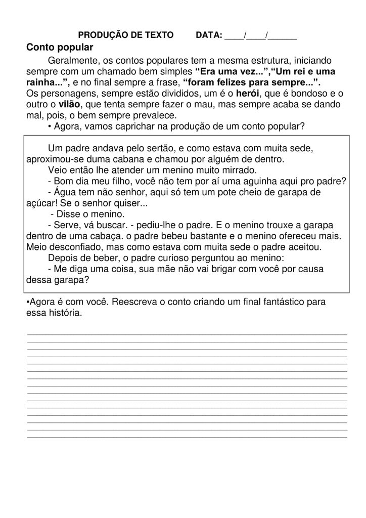 4º e 5º anos – ATIVIDADES DE PRODUÇÃO DE TEXTOS