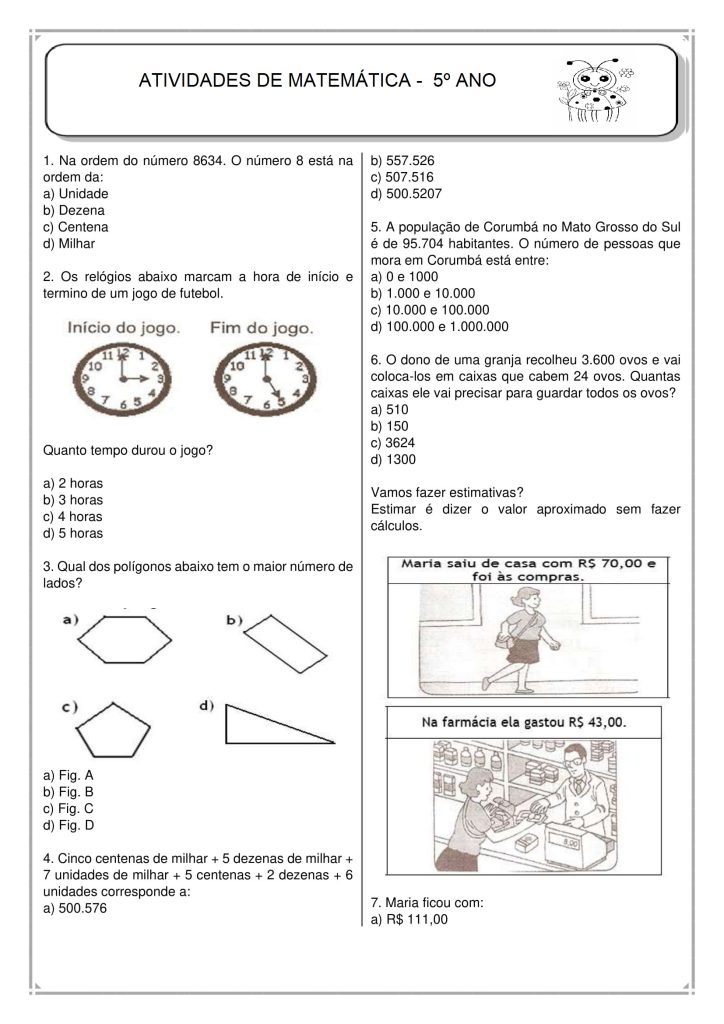 5º ANO – ATIVIDADES DE MATEMÁTICA