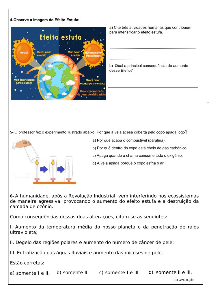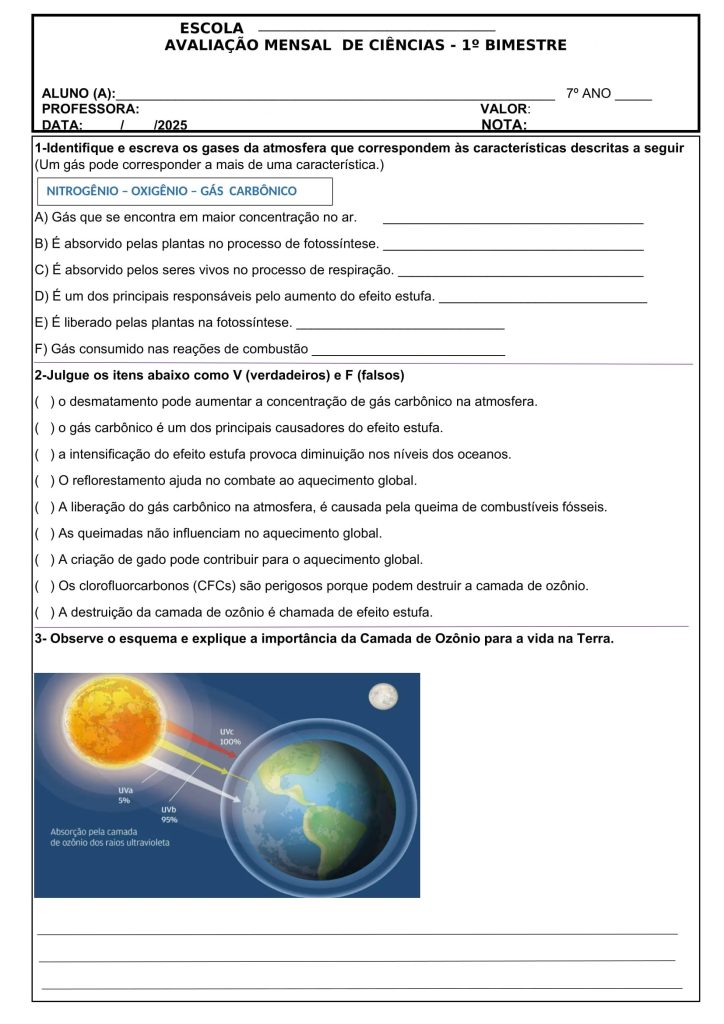 7º ANO – AVALIAÇÃO MENSAL DE CIÊNCIAS – 1º BIMESTRE/2025