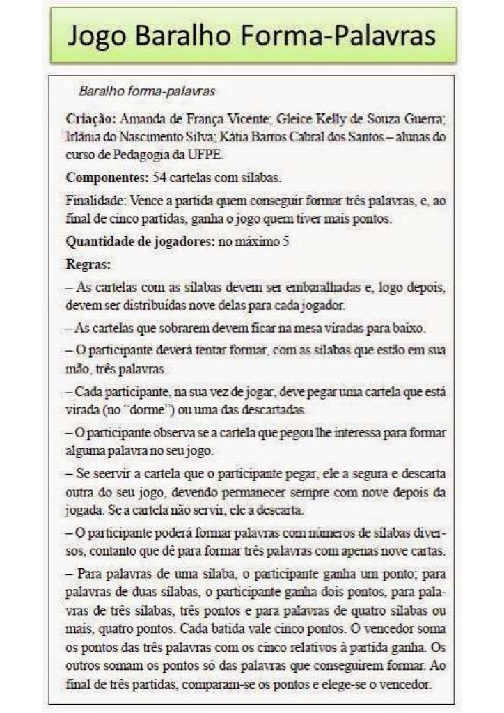 ALFABETIZAÇÃO – Jogo baralho forma – palavras