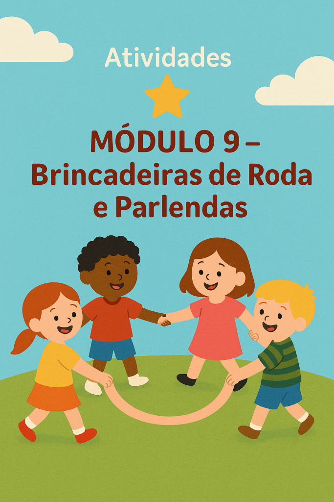 🌟 MÓDULO 9 – Brincadeiras de Roda e Parlendas, que favorecem a oralidade, a memória, o ritmo, a interação social e o reconhecimento de estruturas rítmicas da linguagem. Todas com alinhamento à BNCC.