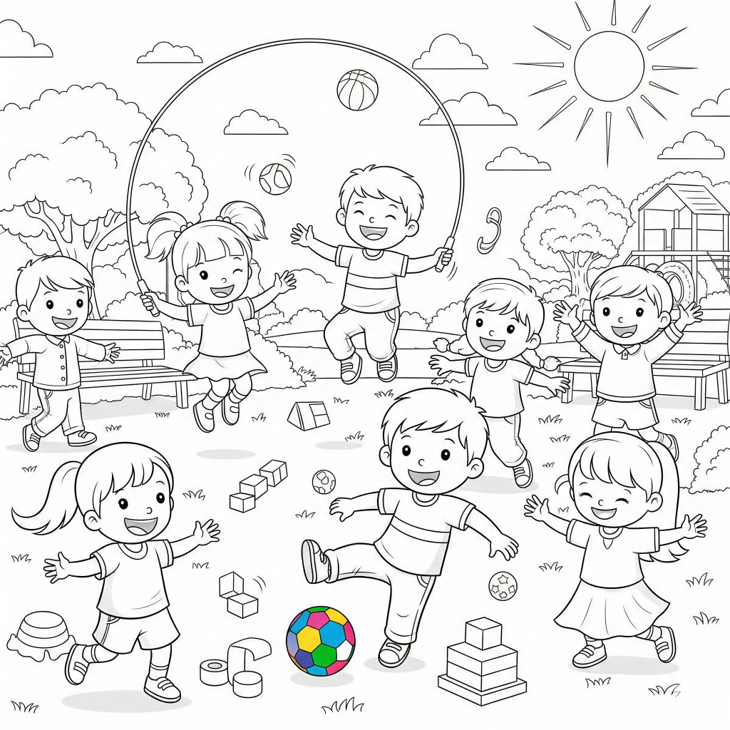 - Atividade corporal ao ar livre: Circuito de brincadeiras incluindo pular corda, amarelinha, corrida de obstáculos e dança livre com músicas animadas como “Cabeça, ombro, joelho e pé”.