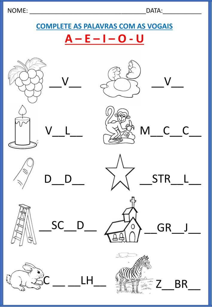 Ed. infantil e 1º ano – Atividades envolvendo o alfabeto e vogais