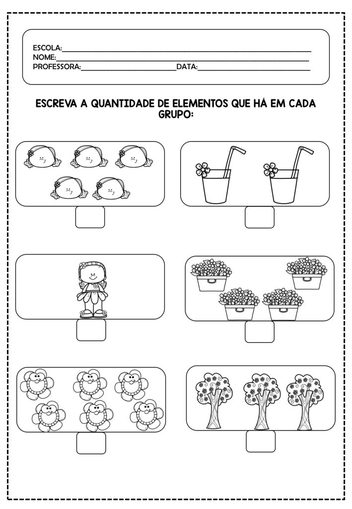 - Contagem: Contar as pétalas das flores desenhadas, as folhas da árvore e os animais criados.