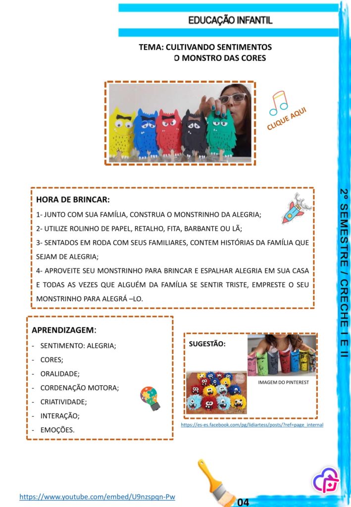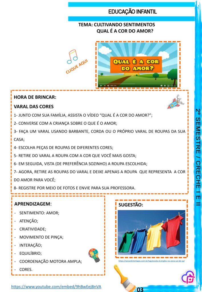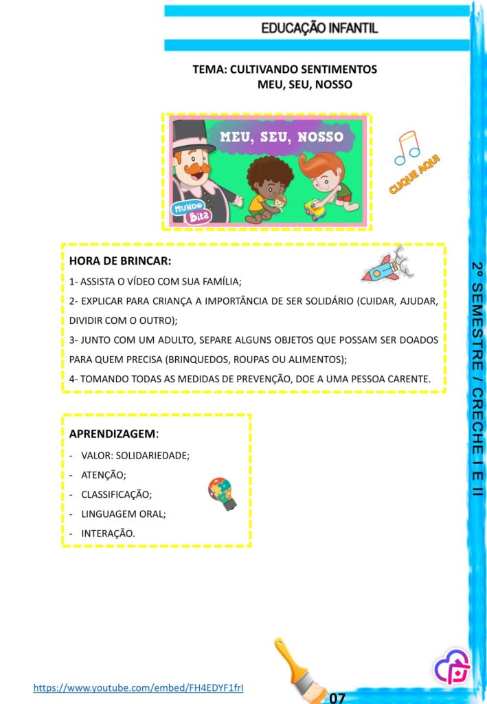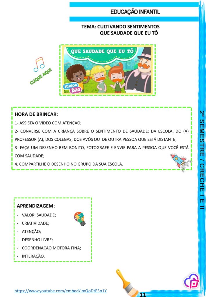 Avaliação: será continua, por meio da devolutiva das atividades pelo whats app.